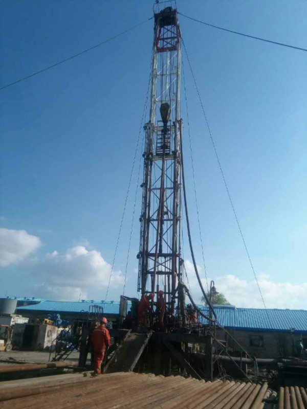 圖片新聞:公司院內(nèi)的地?zé)嵩囼?yàn)一井,下套管施工(2017年史文全報道)